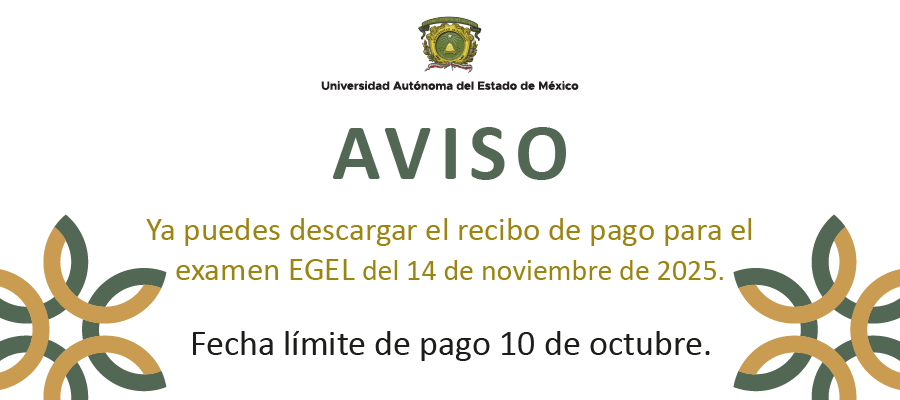 • Teléfonos: 7224811635, 7222151647, 7222132596 Ext. 1001 • E-m@il: egel_uaem@uaemex.mx